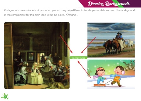 Drawing Backgrounds Backgrounds are an important part of art pieces, they help differentrate shapes and characters. The background is the complement for the main idea in the art piece. Observe . Background 18
