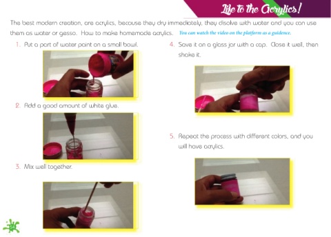 them as water or gesso. How to make homemade acrylics. You can watch the video on the platform as a guidence.