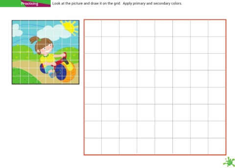 Practicing Look at the picture and draw it on the grid. Apply primary and secondary colors. 67