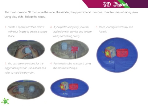 The most common 3D forms are the cube, the cilinder, the pyramid and the cone. Create cubes of many sizes