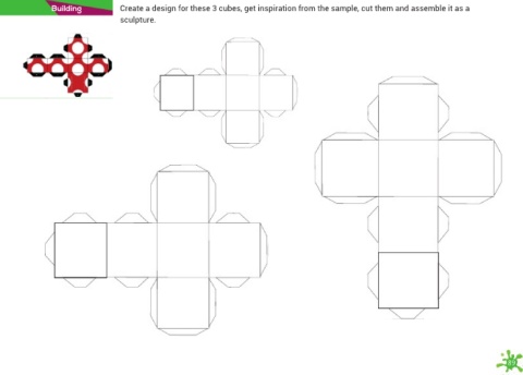 Building Create a design for these 3 cubes, get inspiration from the sample, cut them and assemble it as a sculpture. 89