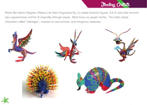 Artists like Isidoro Negrete (Mexico) let their imagination fly, to create fantastic figures, full of color that transmit