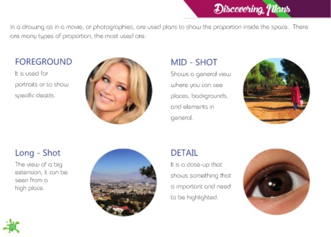 In a drawing as in a movie, or photographies, are used plans to show the proportion inside the space. There