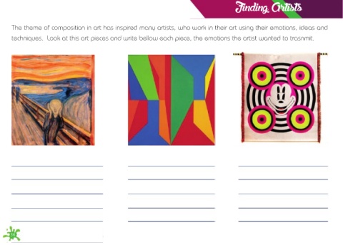 Finding Artists The theme of composition in art has inspired many artists, who work in their art using their emotions, ideas and techniques. Look at this art pieces and write bellow each piece, the emotions the artist wanted to trasnmit. 36