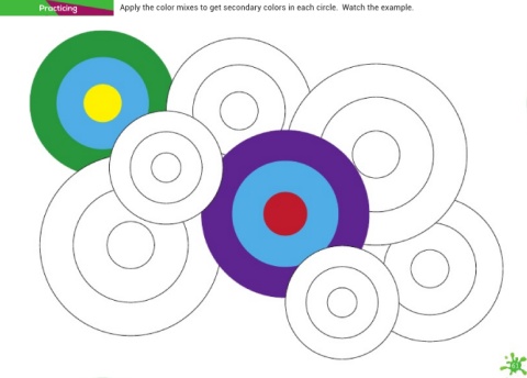 Practicing Apply the color mixes to get secondary colors in each circle. Watch the example. 61