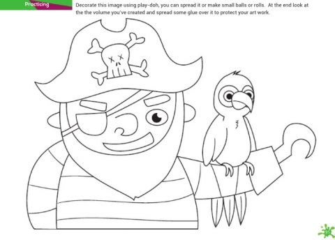 Practicing Decorate this image using play-doh, you can spread it or make small balls or rolls. At the end look at the the volume you’ve created and spread some glue over it to protect your art work. 95