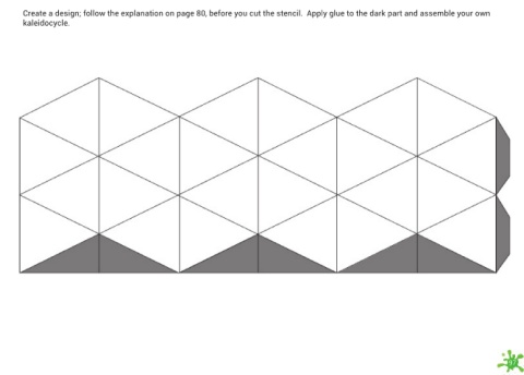 Create a design; follow the explanation on page 80, before you cut the stencil. Apply glue to the dark part and assemble your own kaleidocycle. 97